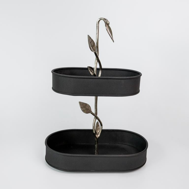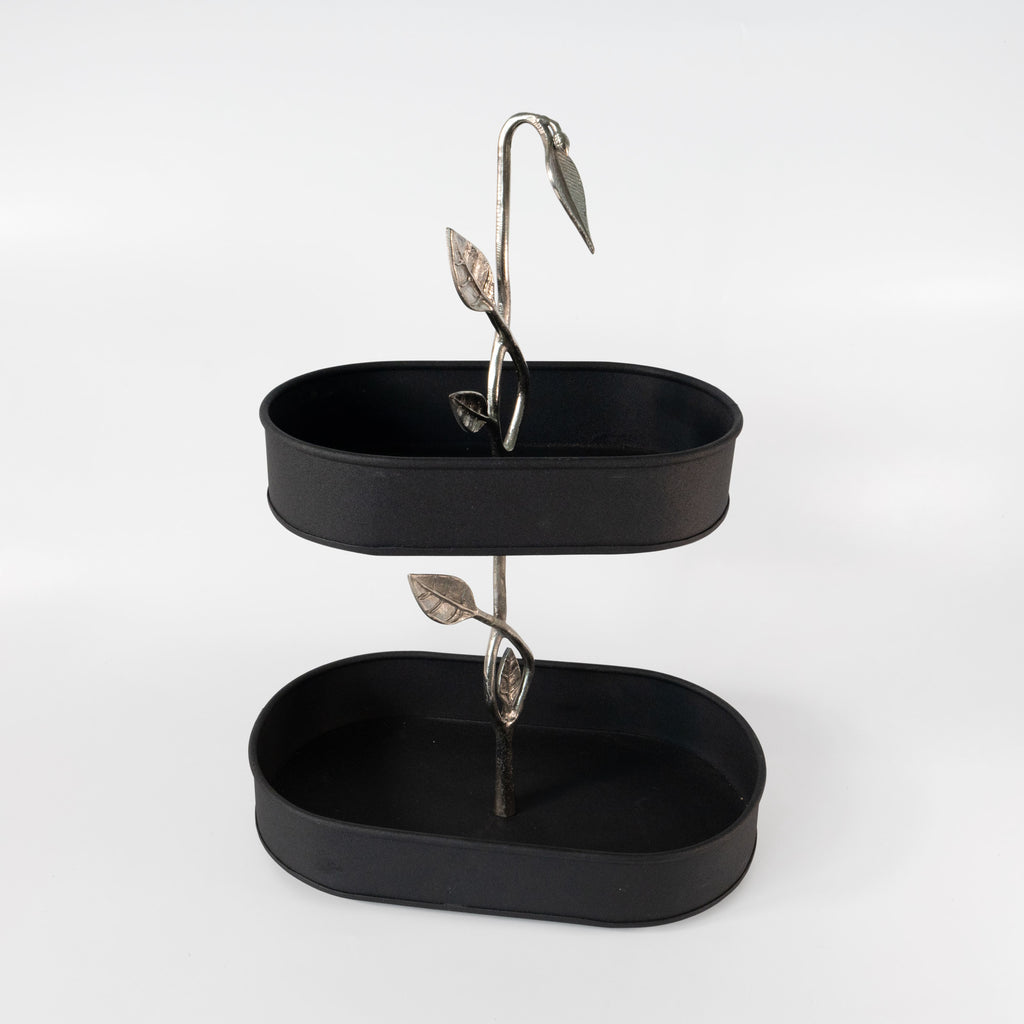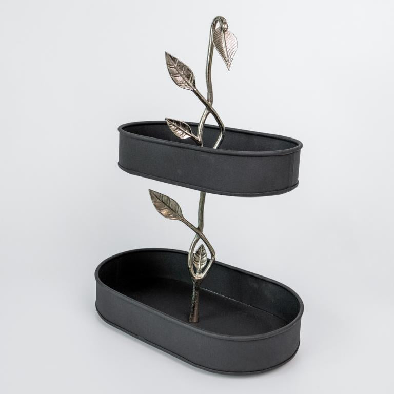 Black Foliate Metal 2 Tier Stand