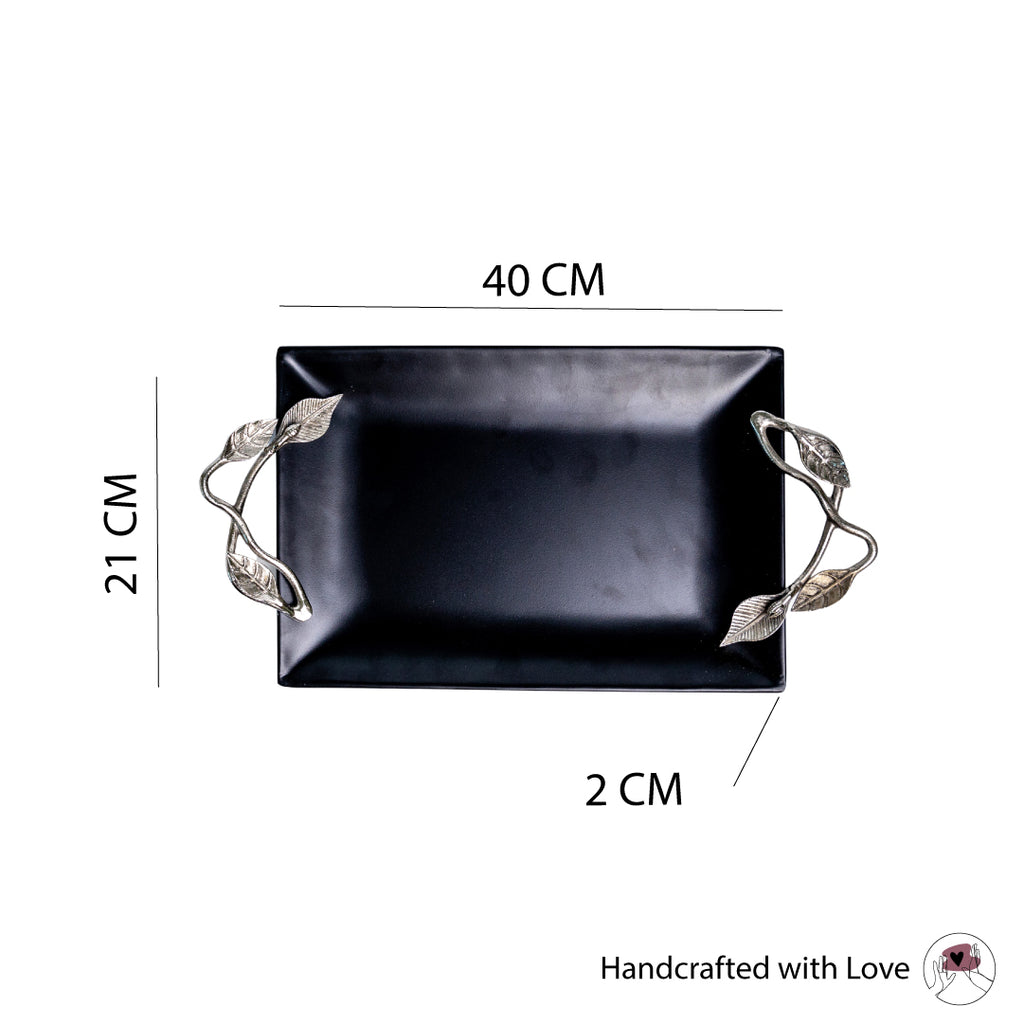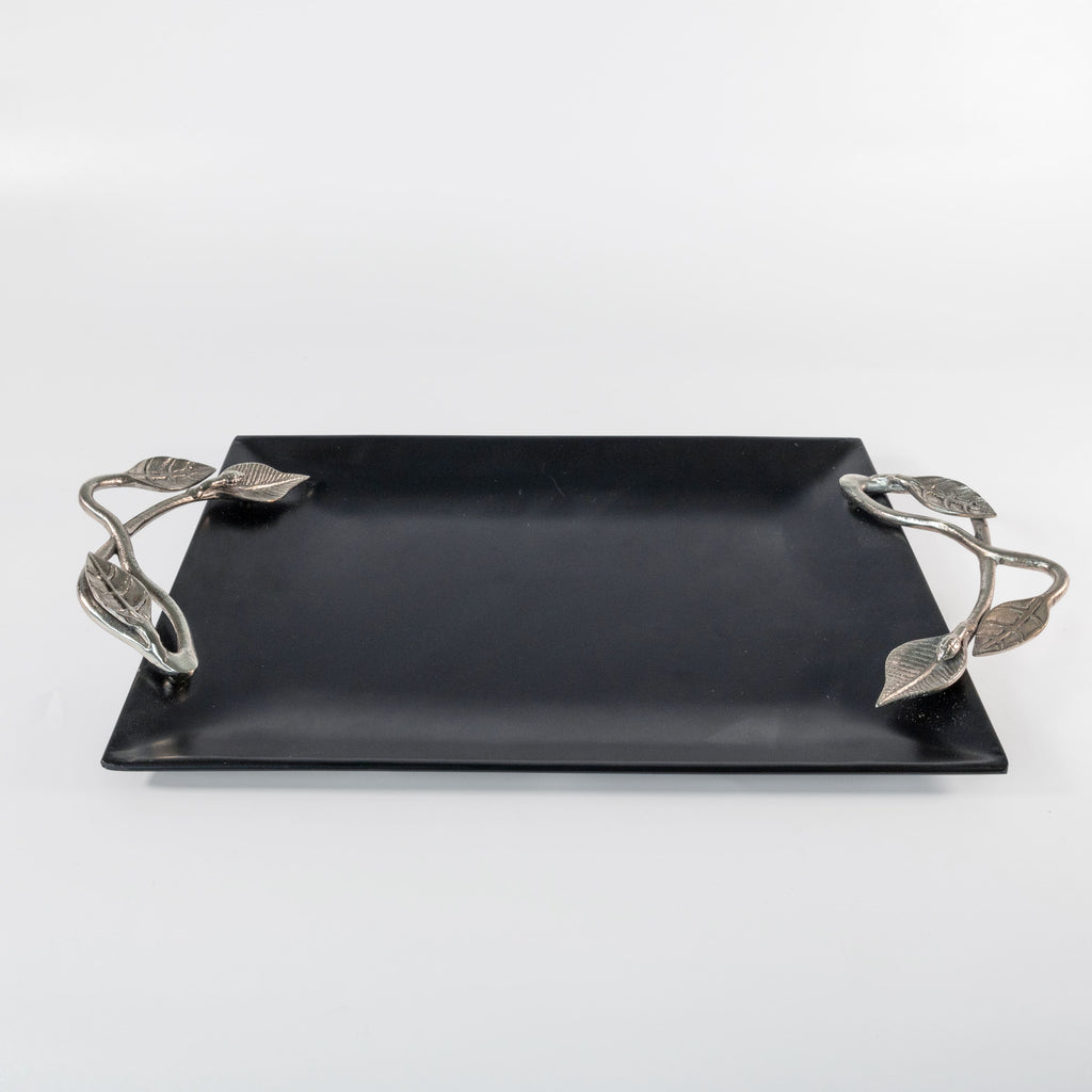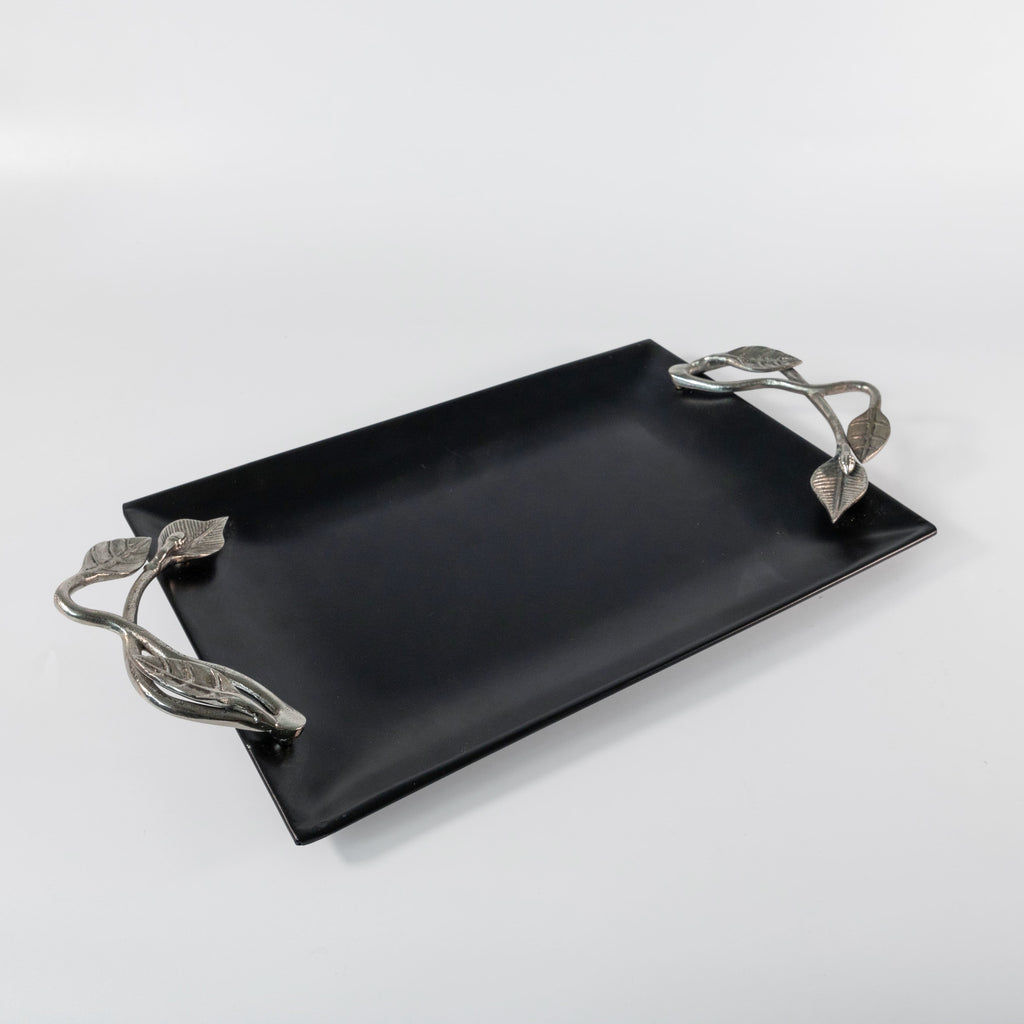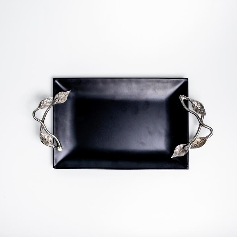 Elevate your hosting game with our Black Foliate Metal Serving Tray featuring chic Nickle Handles! This exquisite tray seamlessly blends sophistication and functionality, making it a must-have for your entertaining arsenal. The intricate foliate design adds a touch of timeless elegance, while the sturdy nickel handles ensure easy carrying and a touch of modern flair. Whether you're serving appetizers, cocktails, or desserts, this tray is the perfect blend of style and practicality, making every gathering a celebration of taste and aesthetics. Upgrade your serving experience with this eye-catching and versatile accessory – because presentation matters!