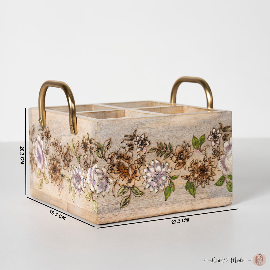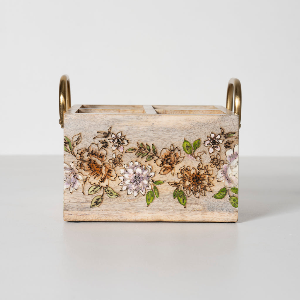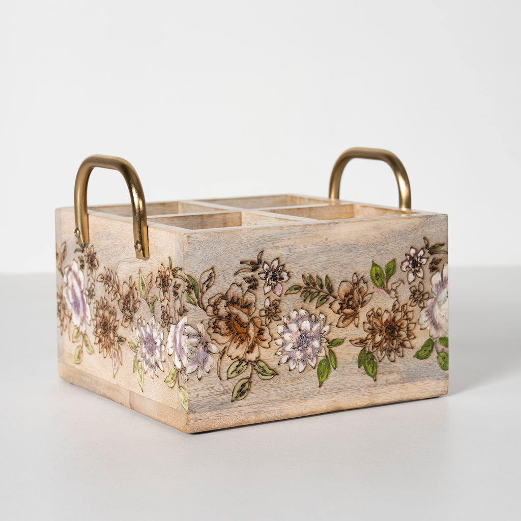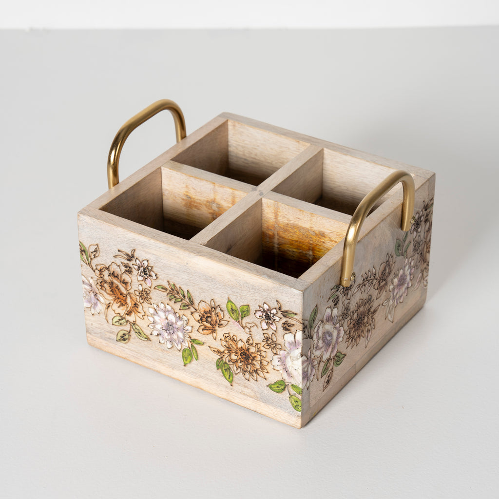 Etched & Handpainted Fluer Pattern 4 Section Caddy