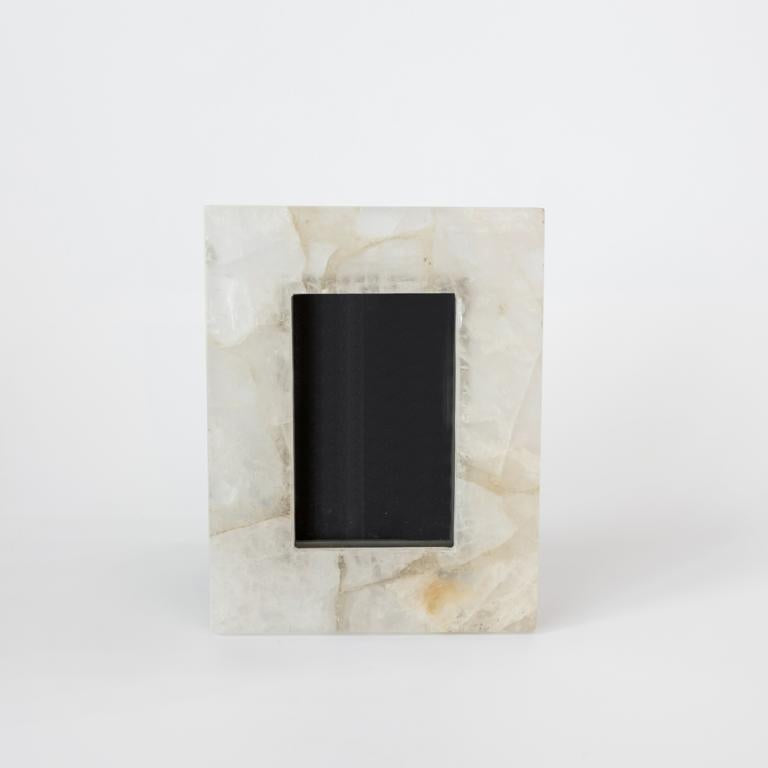 The frame features a lustrous white quartz border that exudes opulence, adding a touch of luxury to your living space. The high-quality quartz material not only ensures durability but also provides a radiant backdrop that beautifully enhances the colors and details of your photos. White Quartz holds and amplifies intention, while also diffusing an aura of tranquillity, calm, and peace into one's energy field and space. A sweet stone for places of healing, White Quartz supports the clearing of energetic stagnation, and physical, emotional, and mental balance.