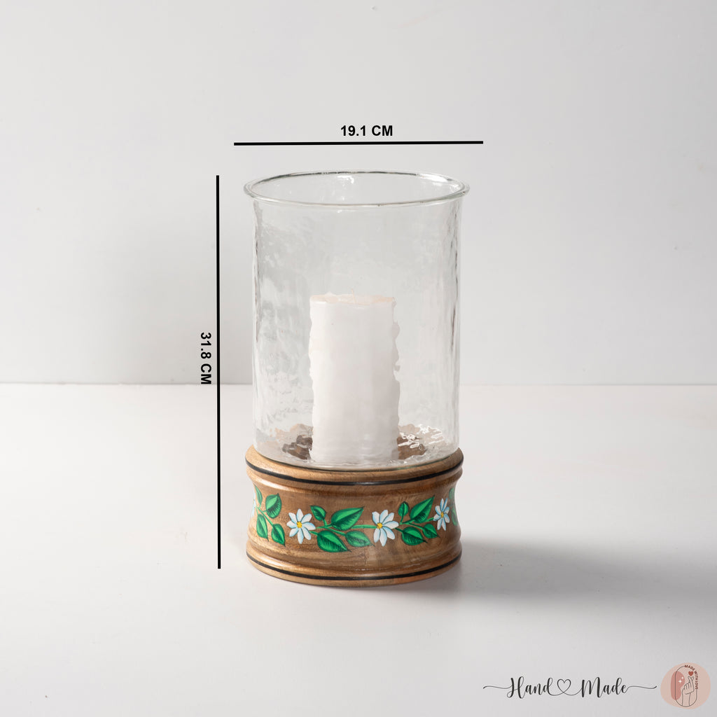 Create a serene ambiance with the Peaceful Pastel Wooden Botanical Handpainted Large Candle Holder.