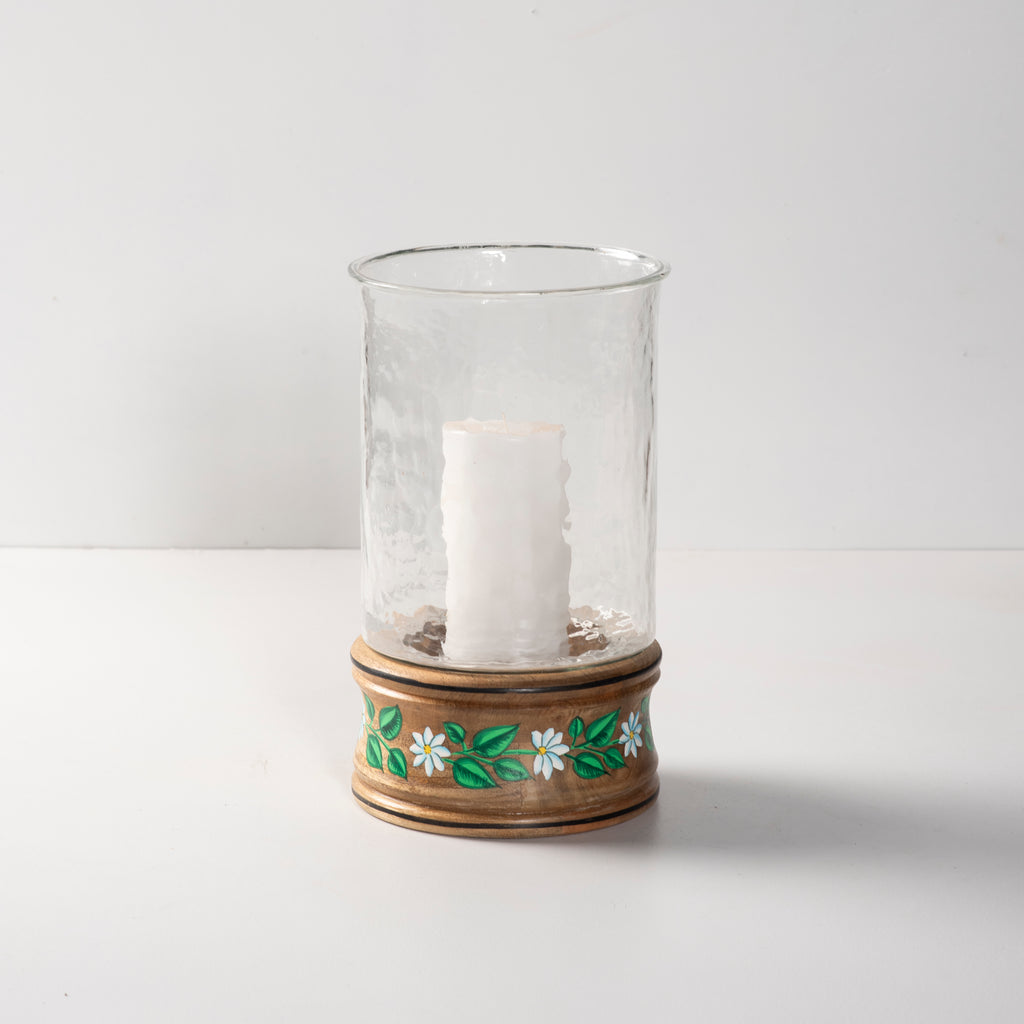 Peaceful Pastel Wooden Botanical Handpainted Large Candle Holder