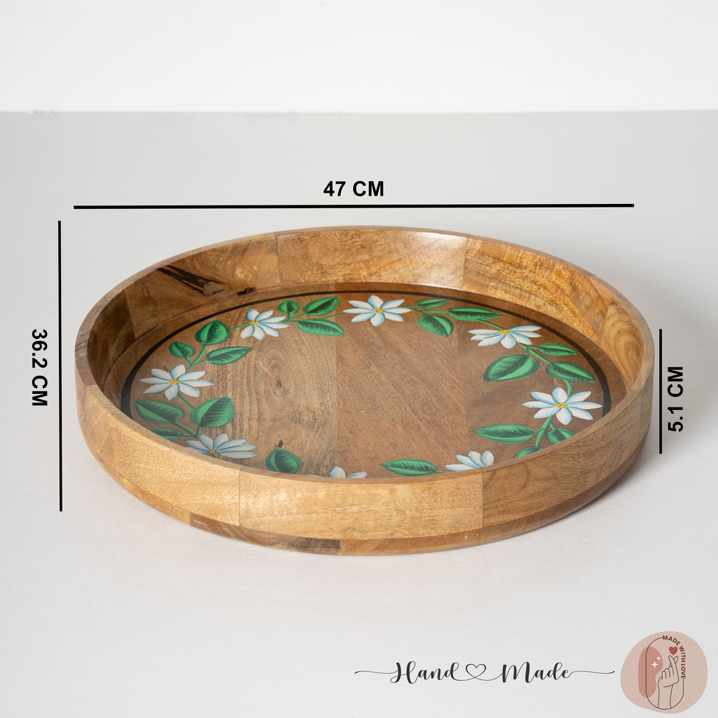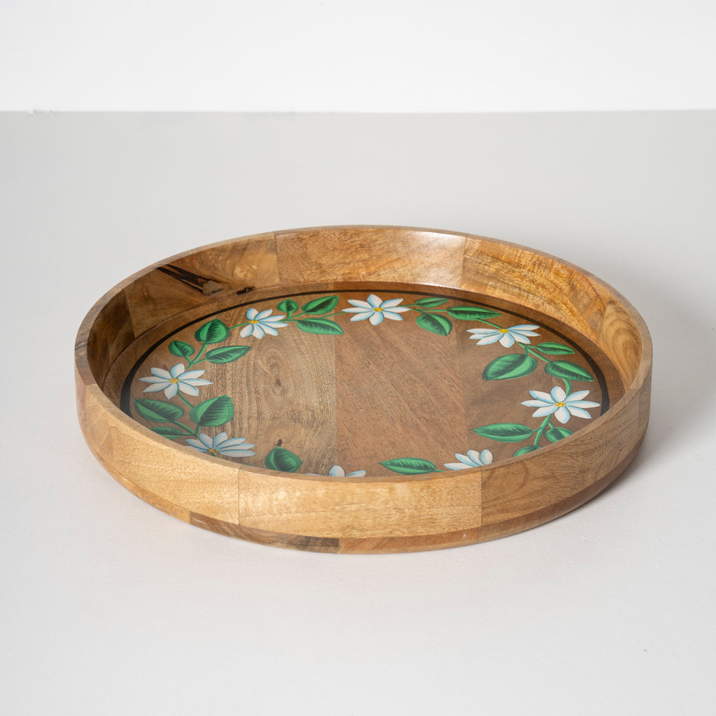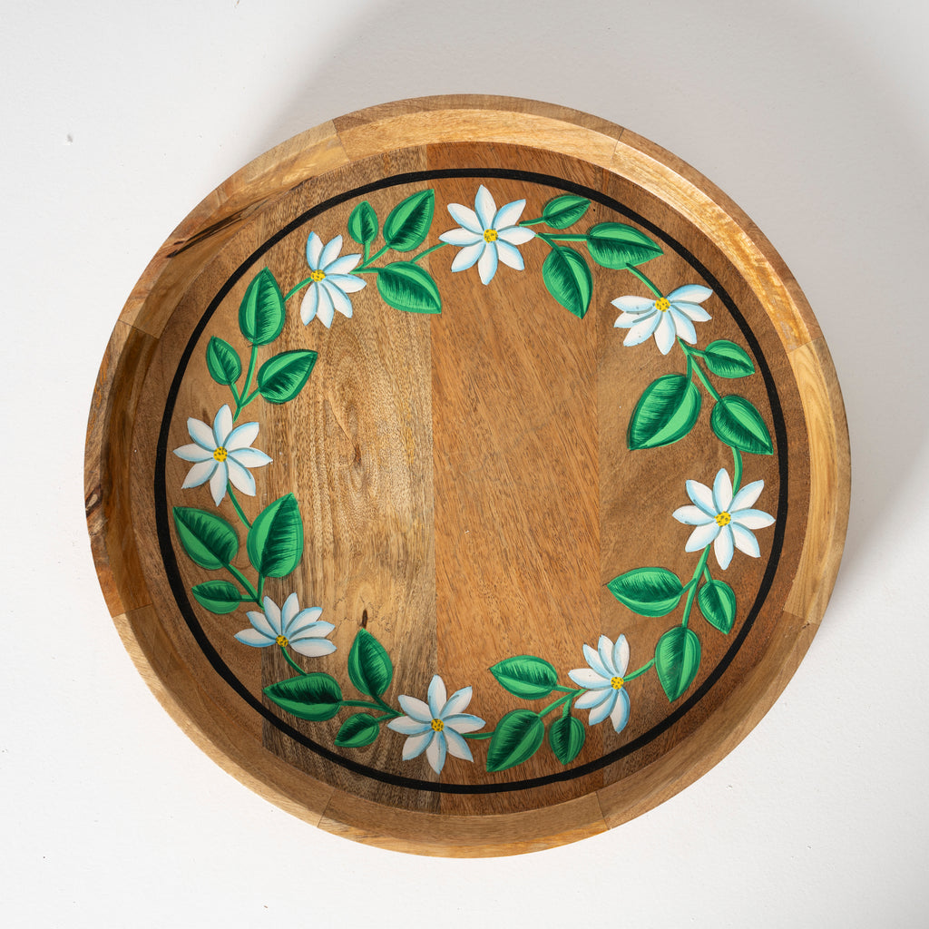 Peaceful Pastel Wooden Botanical Handpainted Round Tray