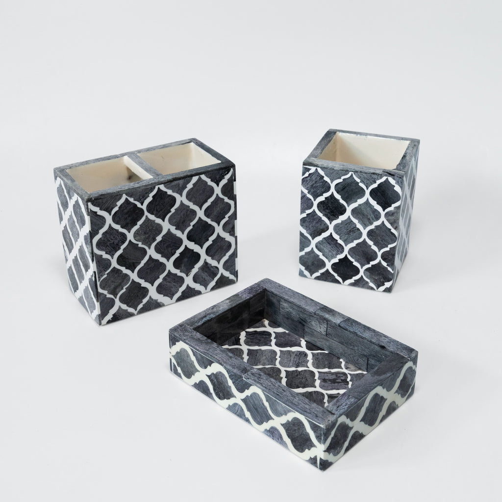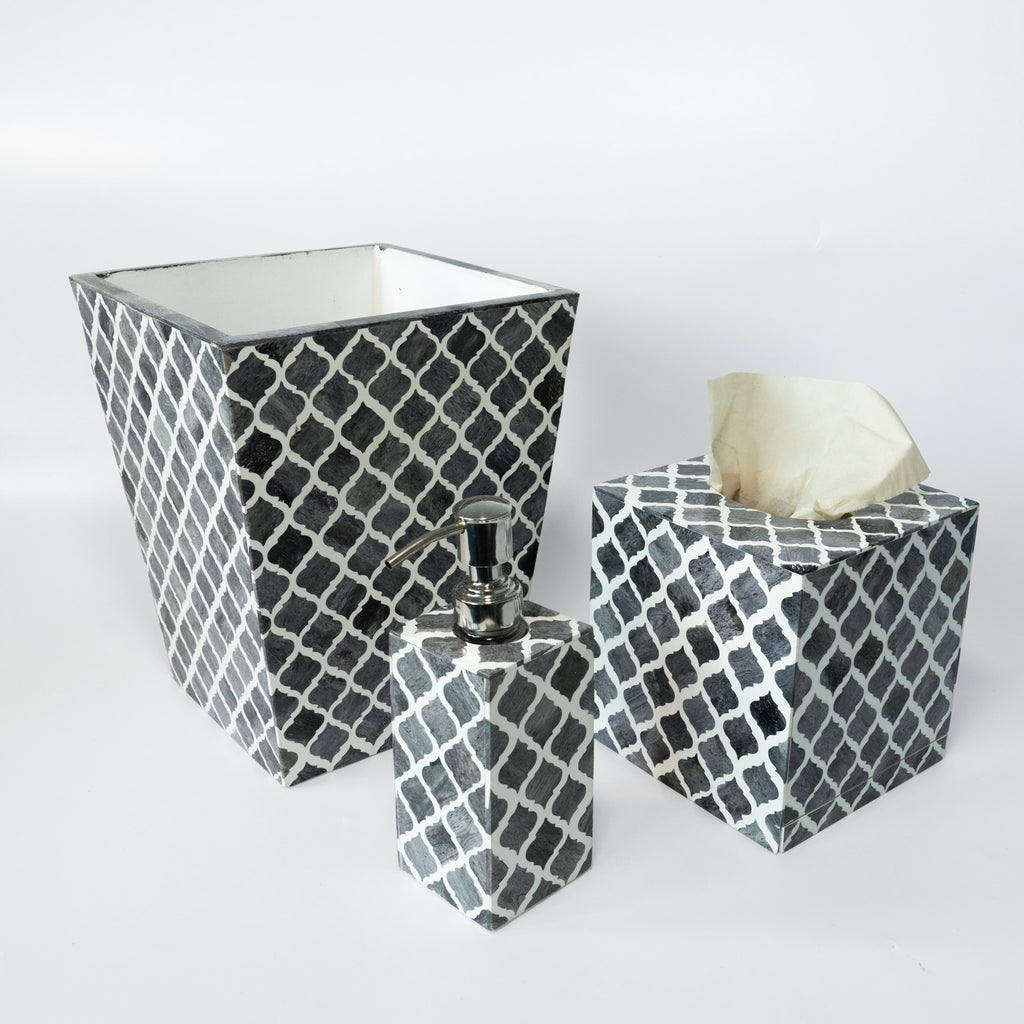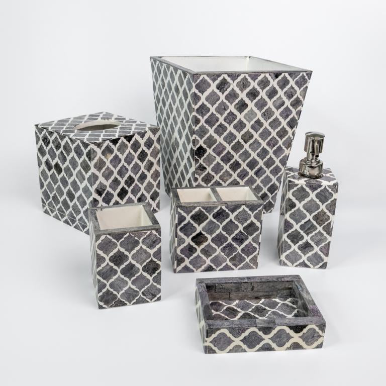 Queenly monochrome Moroccan Tile Bone Inlay 6 PC Bathroom Set