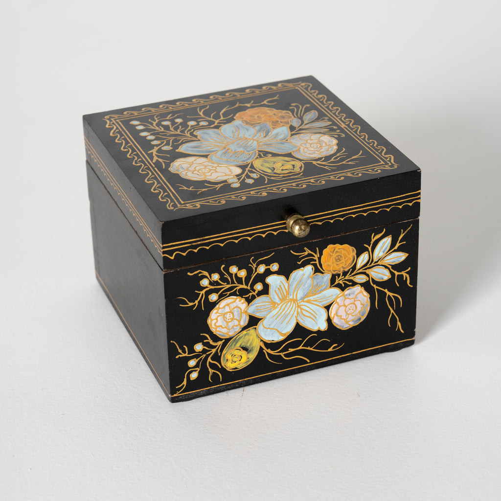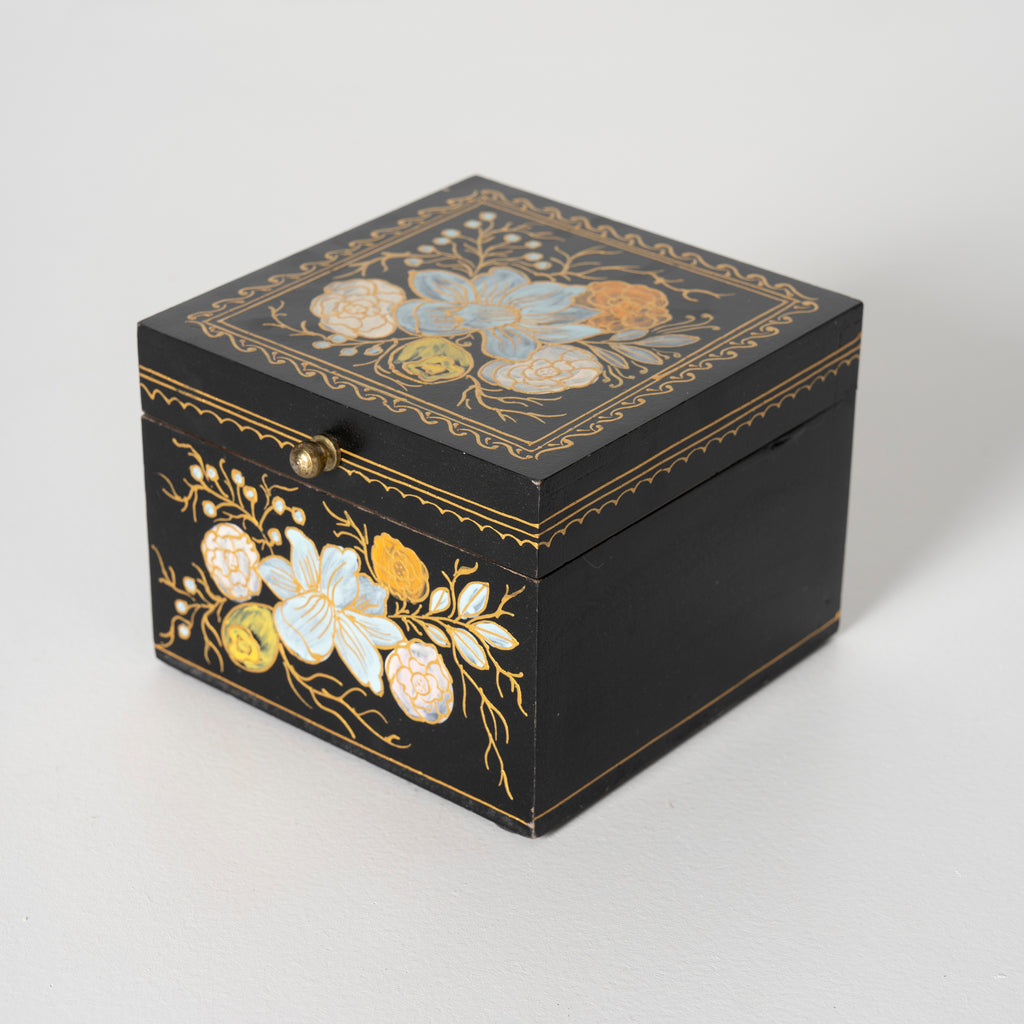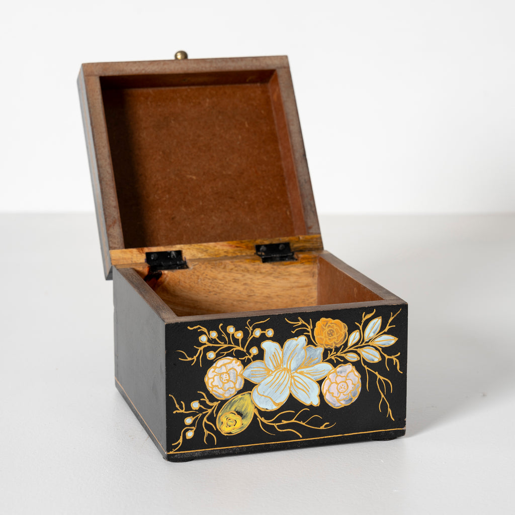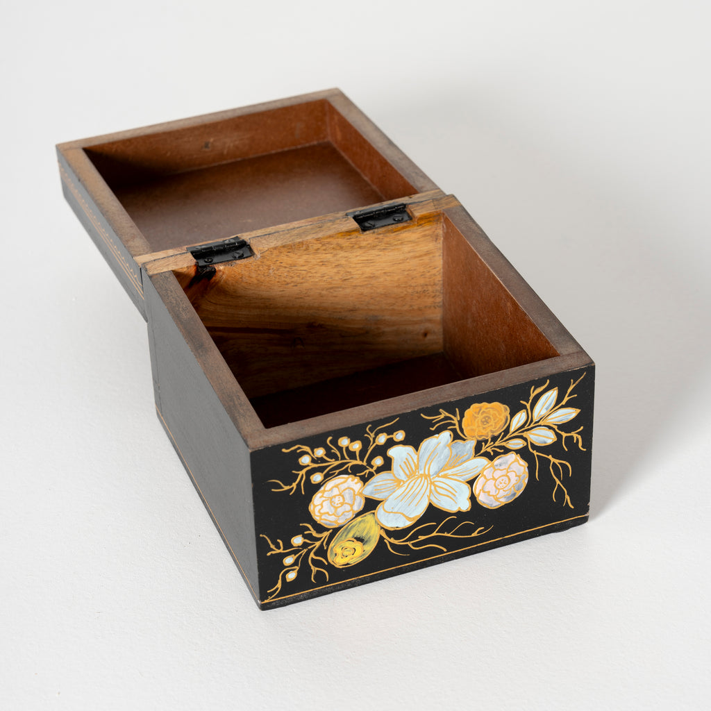 Ebony Elegance Handpainted Floral Storage Box