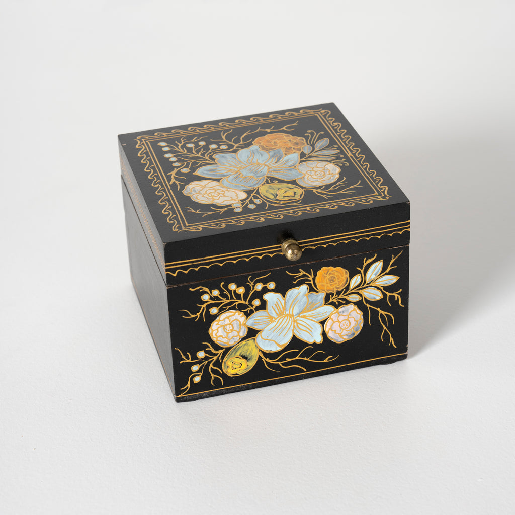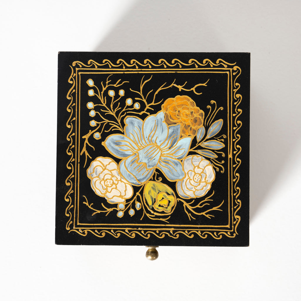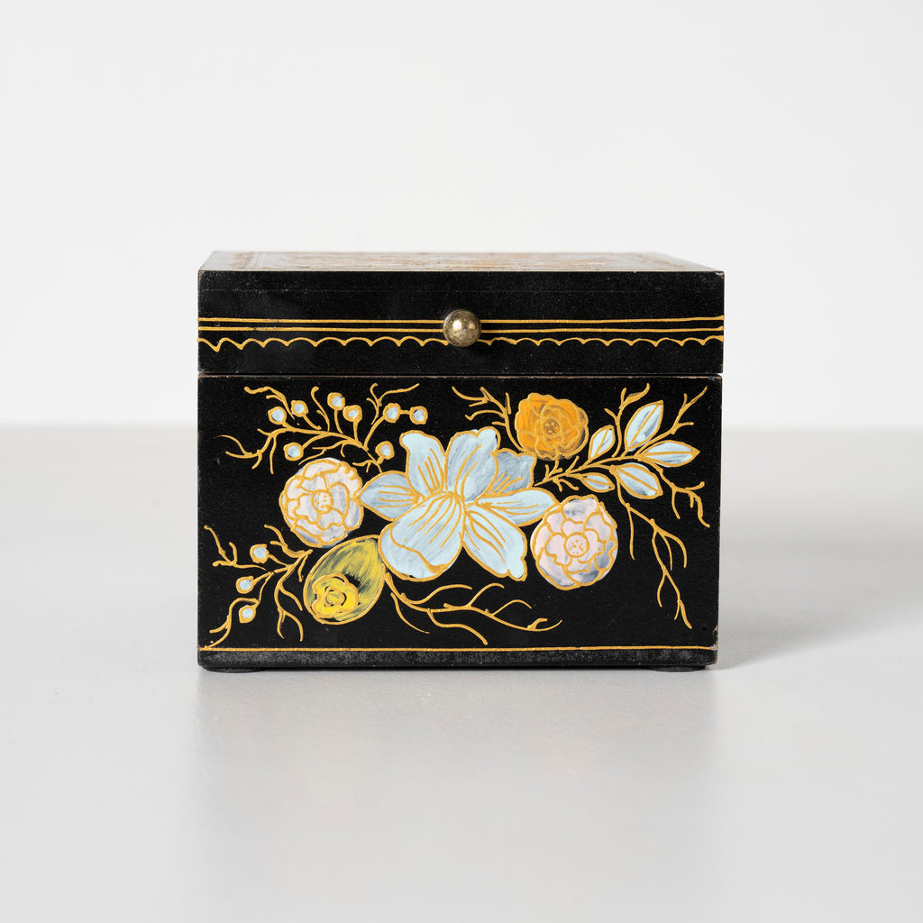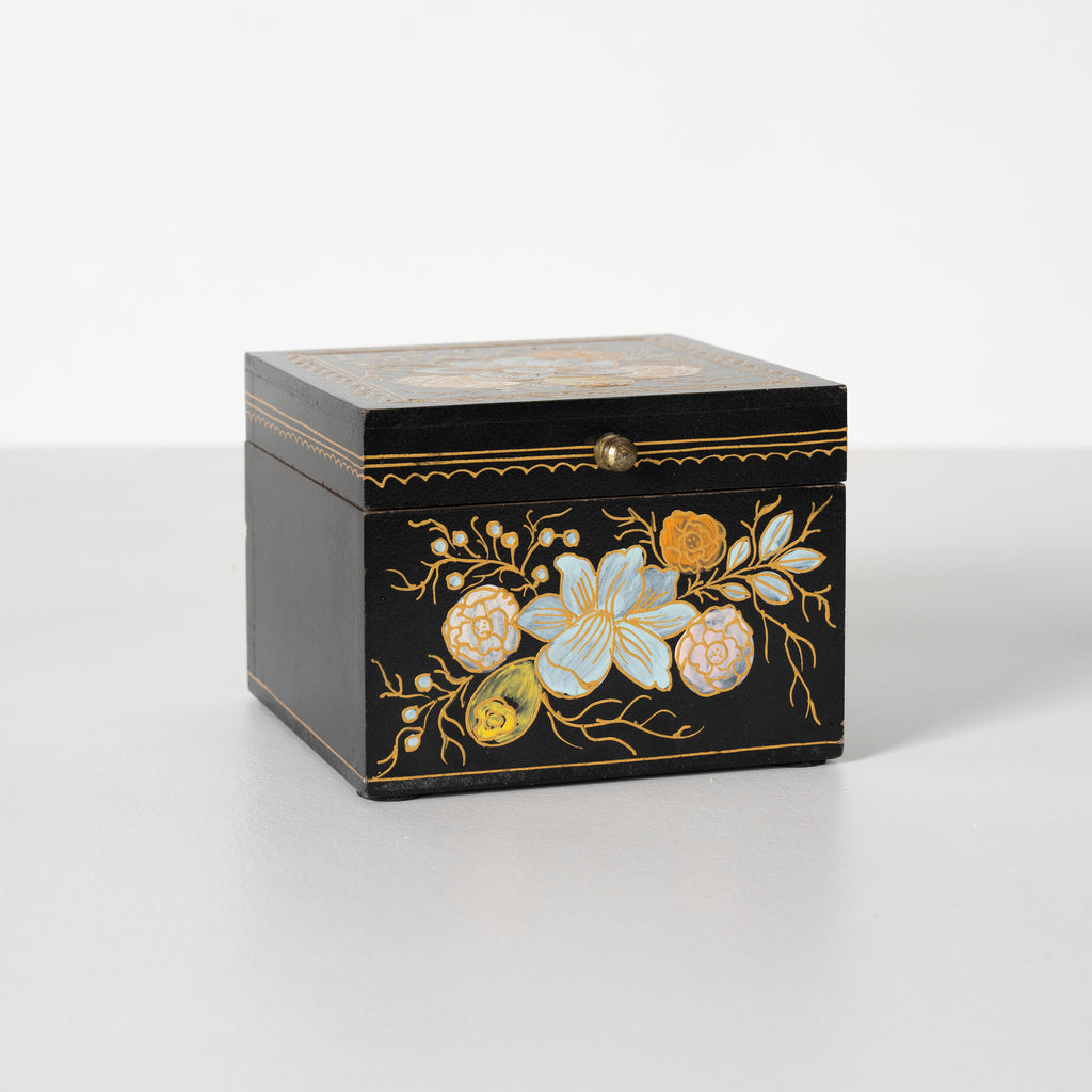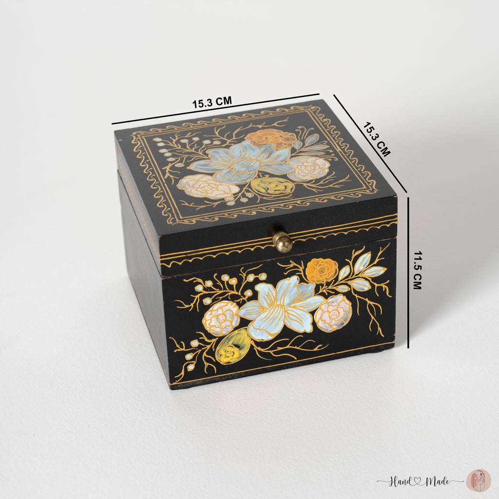 Ebony Elegance Handpainted Floral Storage Box