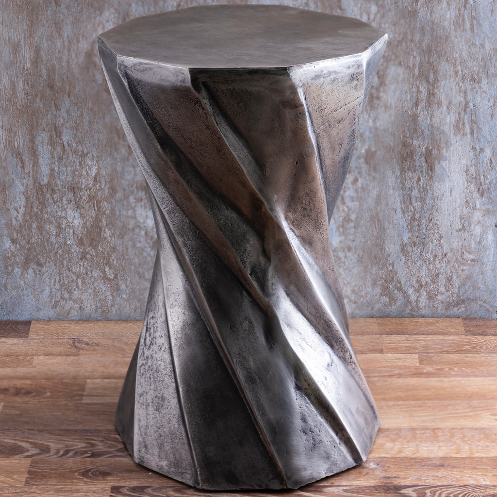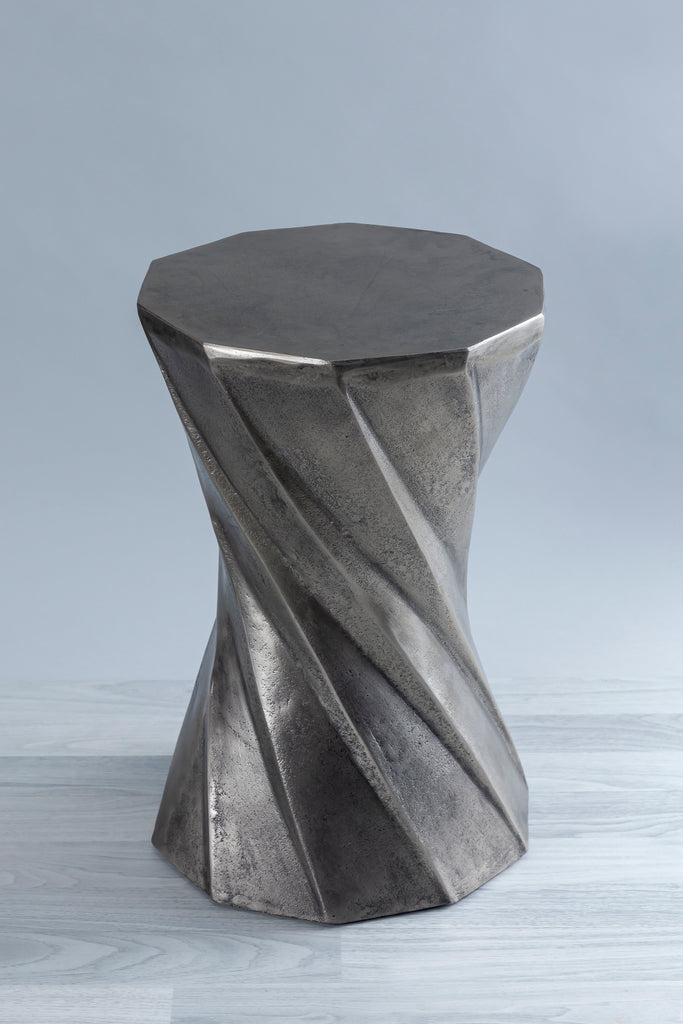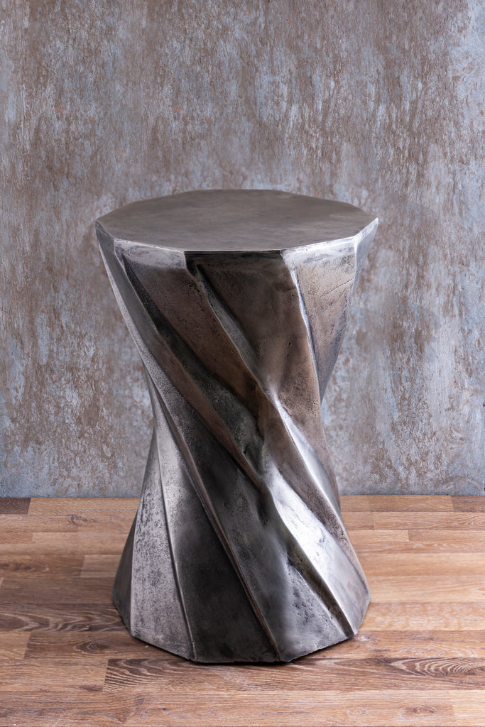 Krato End Stool in Casted Metal Nickel Antique Finish
