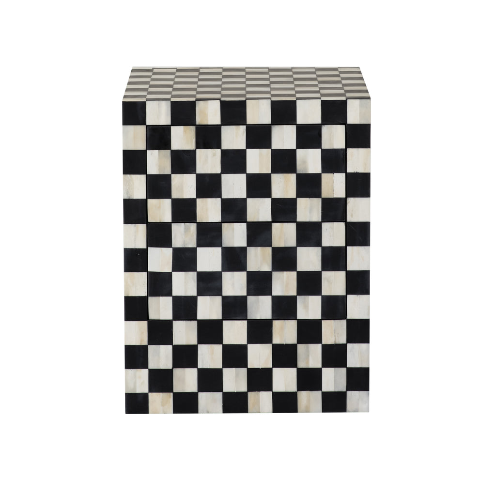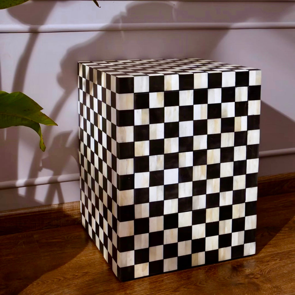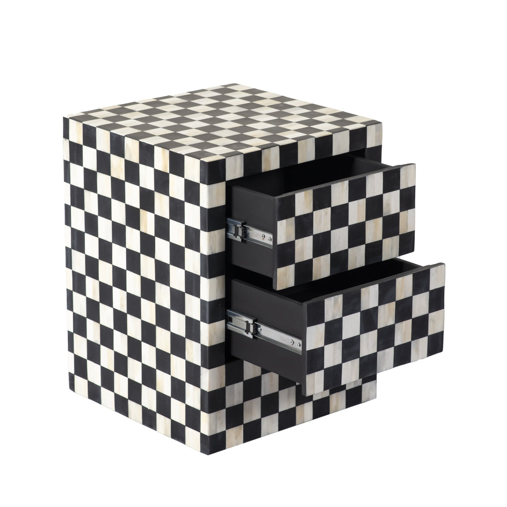/ Ms. Illusion's Cheaker Board Bone Inlay Side Table with Two Slyly Hidden Drawer