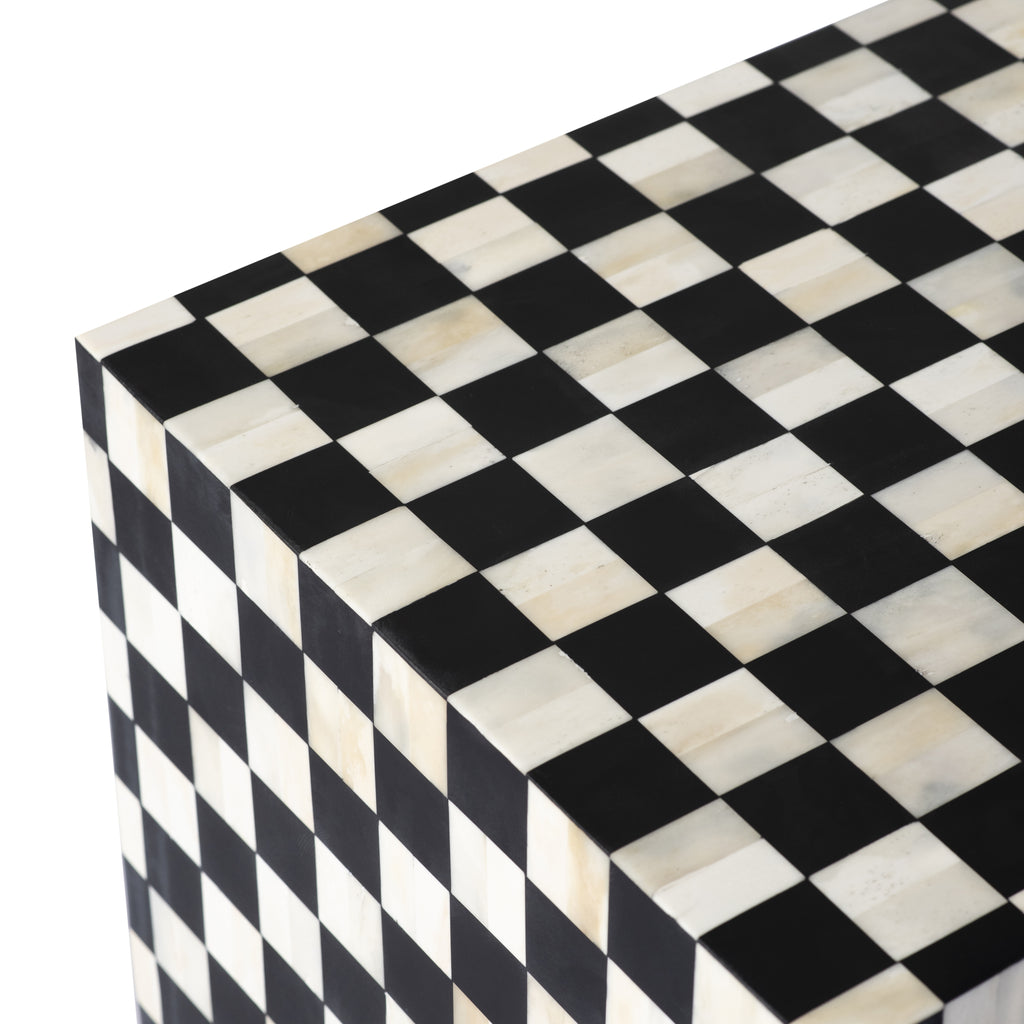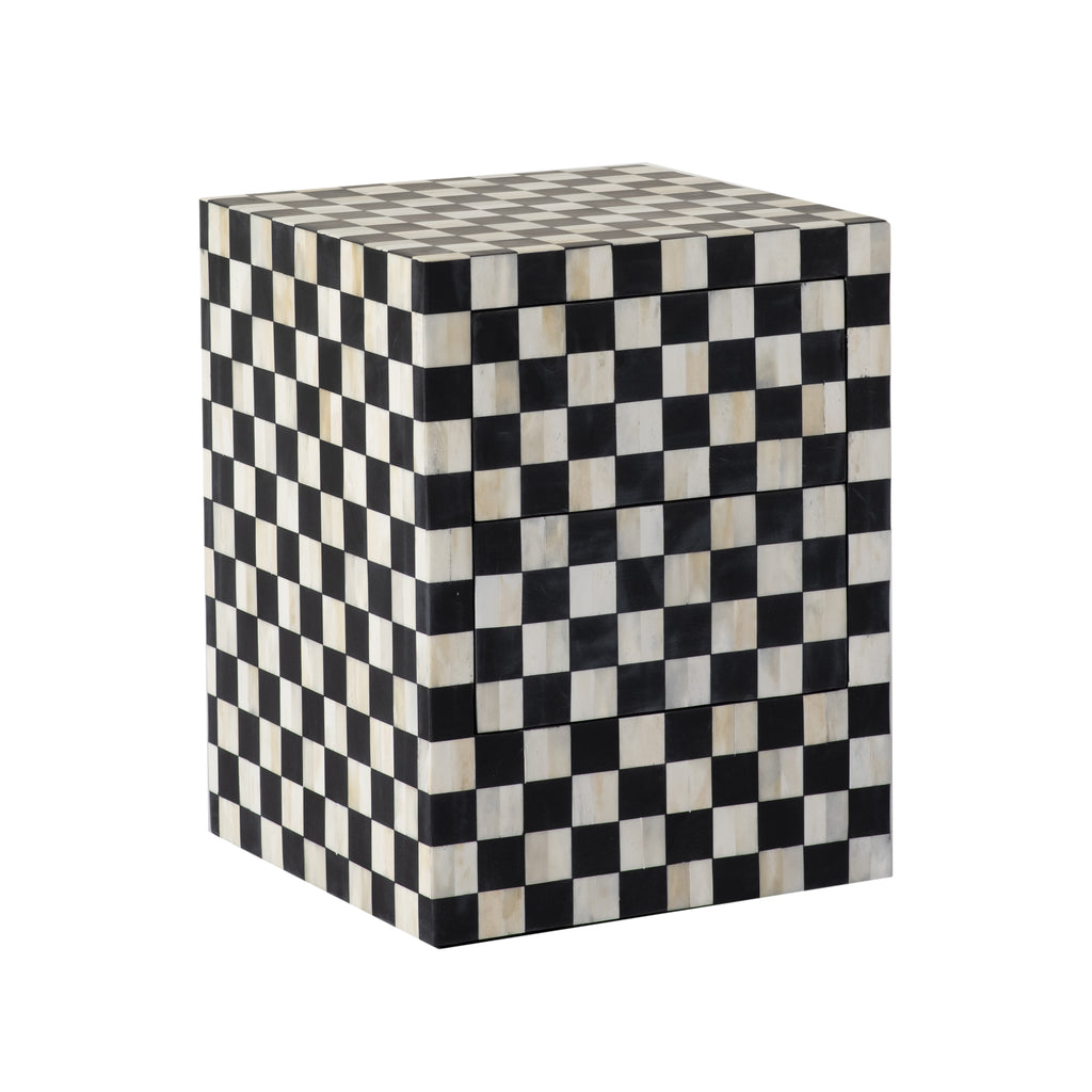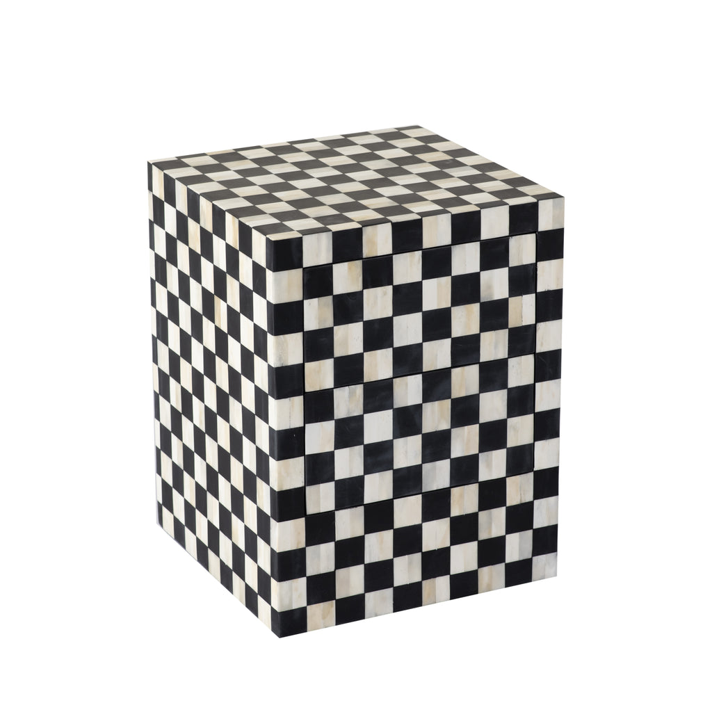/ Ms. Illusion's Cheaker Board Bone Inlay Side Table with Two Slyly Hidden Drawer