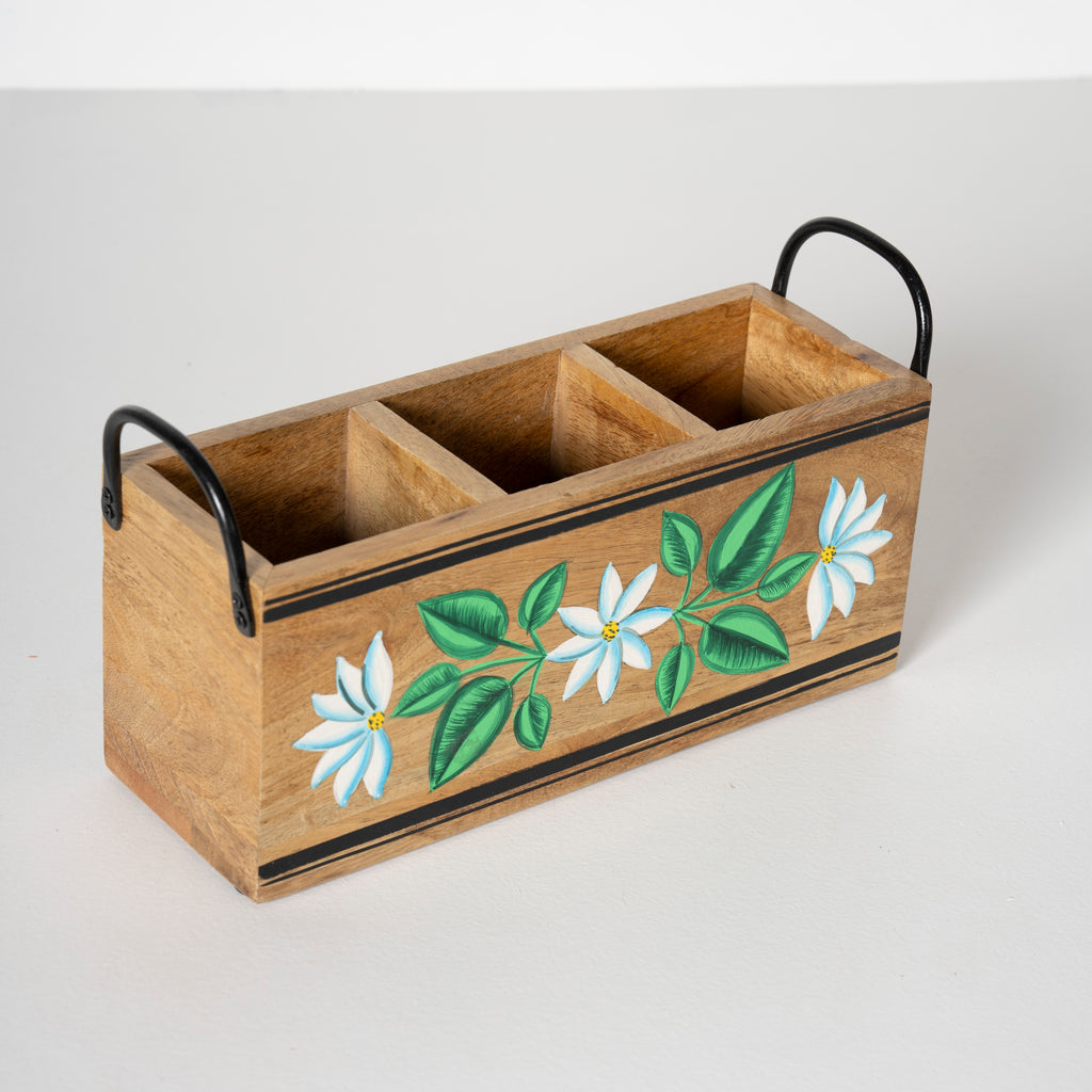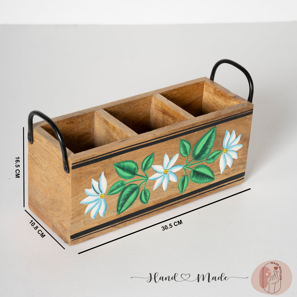 Peaceful Pastel Wooden Botanical Handpainted 3 Section Caddy