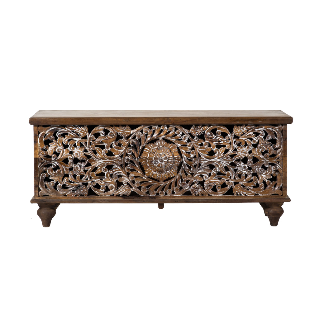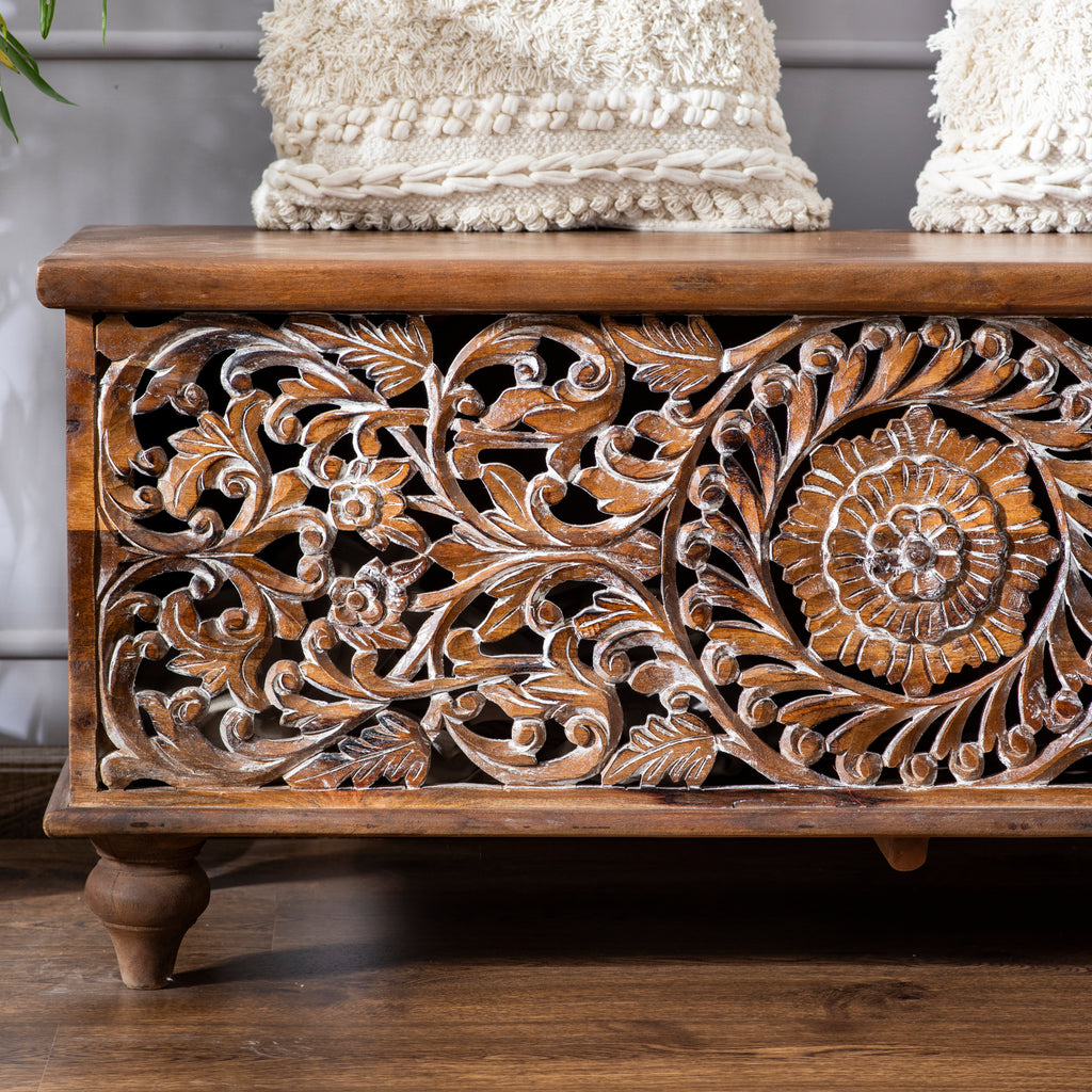 / Timeless Treasury Hand Carved Solid Wood Trunk in Rustic Finish