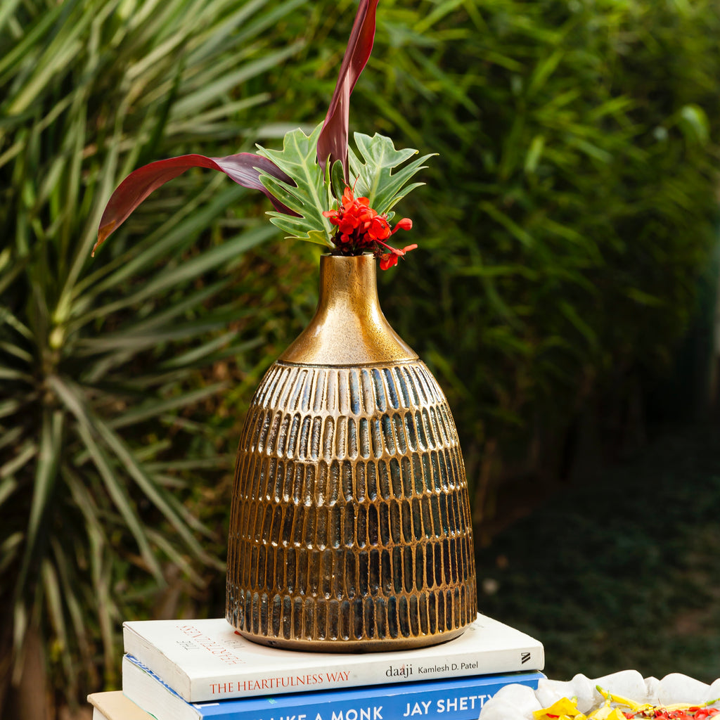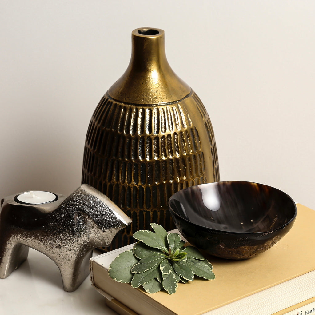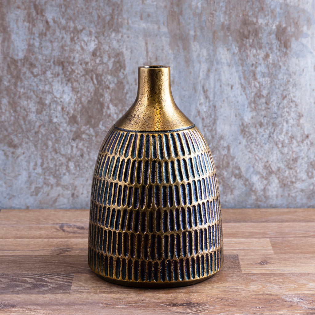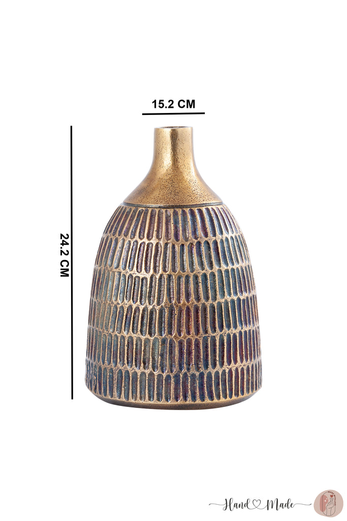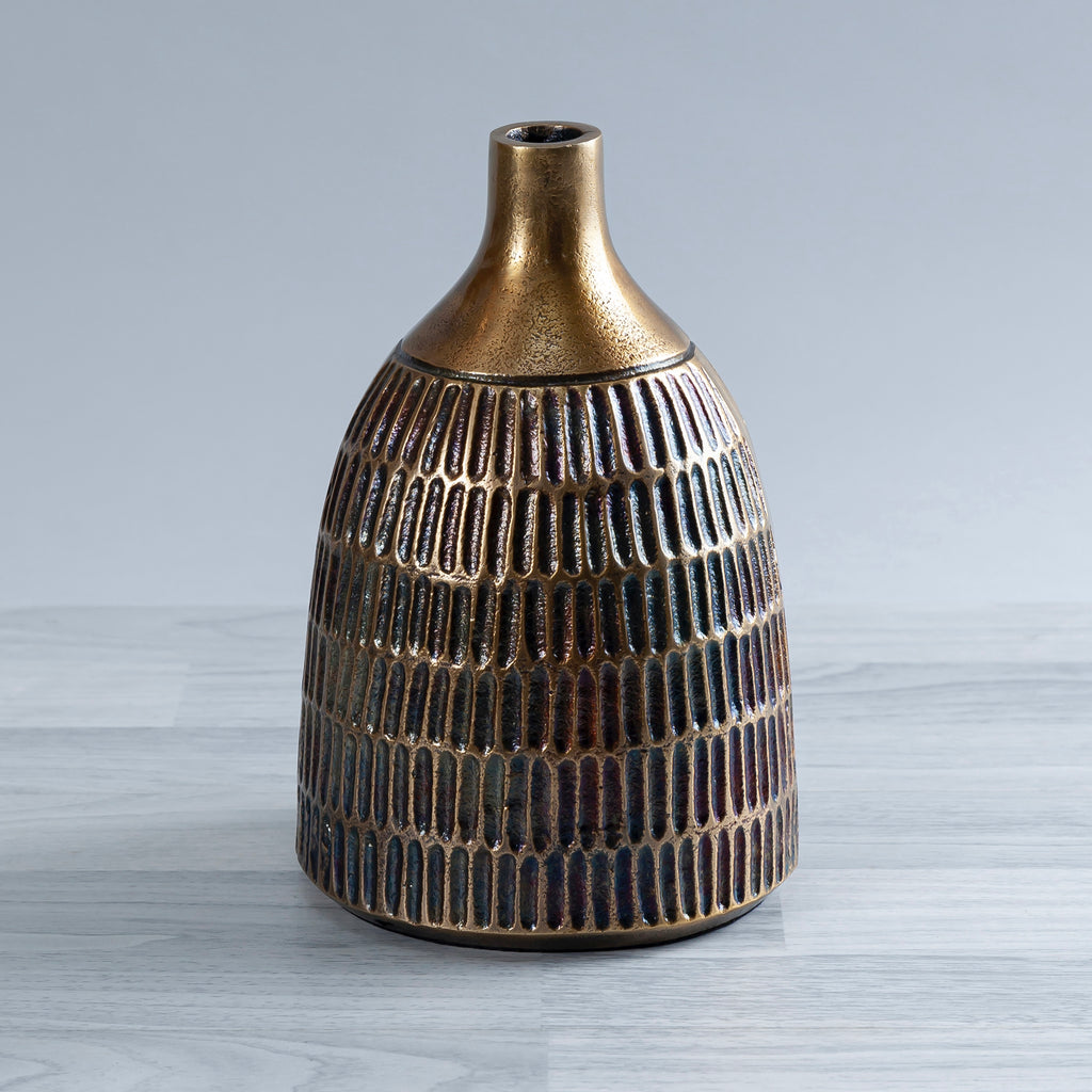 Introducing the Vasiliki Vase, a captivating piece in Casted Metal with a dazzling Rainbow Brass Finish.